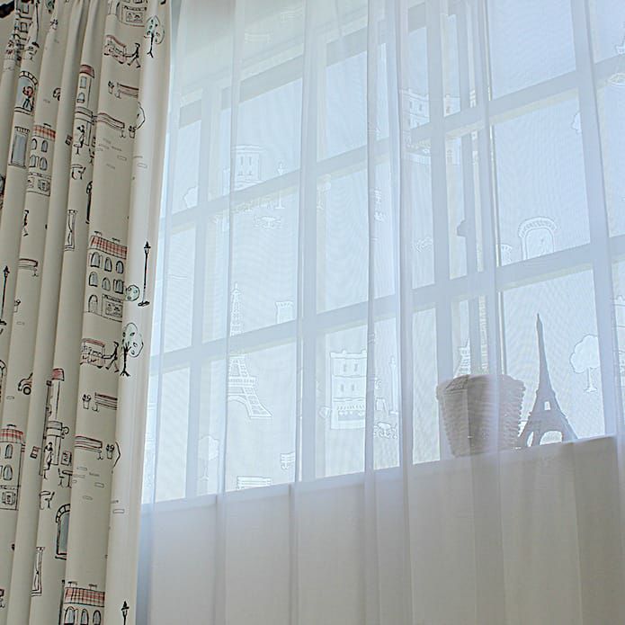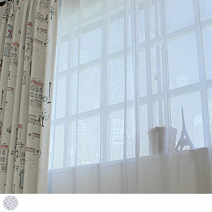 光に透けて浮かび上がるパリの風景のデザインがおしゃれなレース ペアデザインのカーテン「パリス」とコーディネートすれば、昼も夜もパリのデザインをお楽しみいただけます。 ミラーレースなので日中は外から見えにくくUVカットもしてくれます。