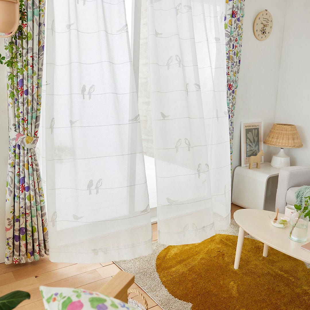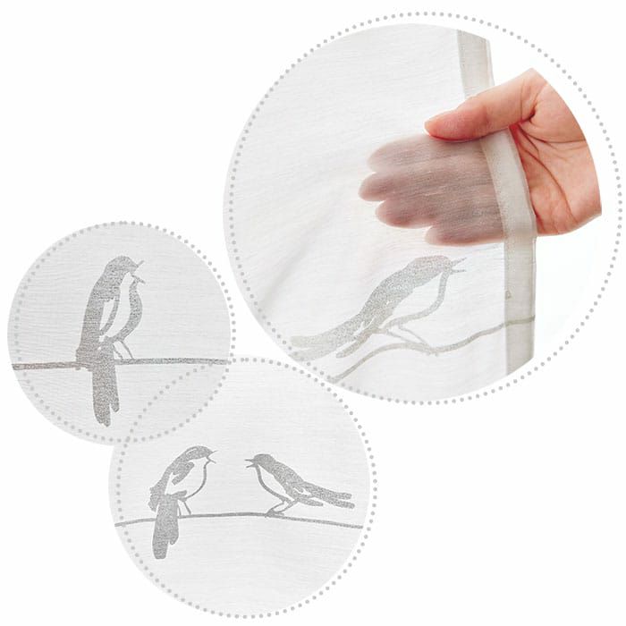 かわいらしい小鳥たちが歌っているボーダーシルエット。優しい北欧風ボイルレースカーテン 【北欧レースカーテン】シングバードボイル