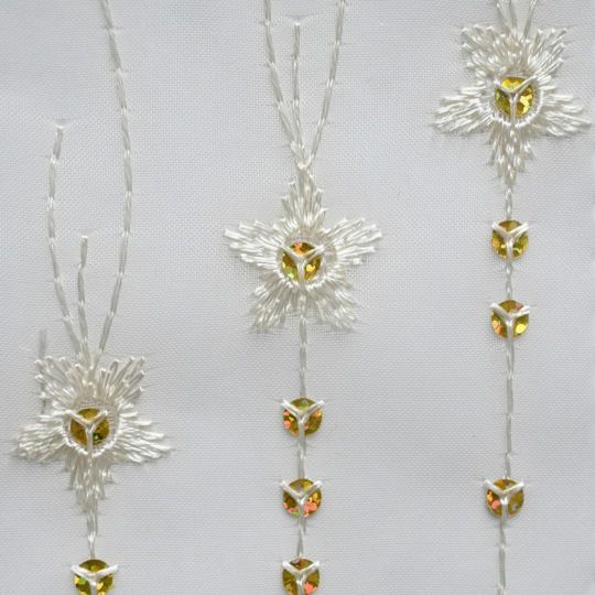 星柄のような刺繍とゴールドのスパンコールがきらきらした可愛いデザインです。