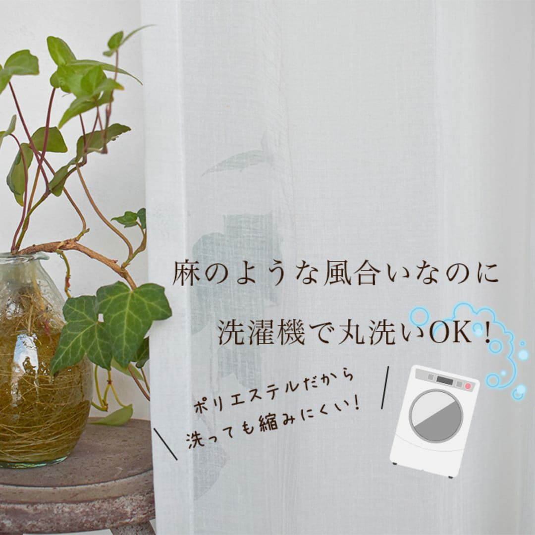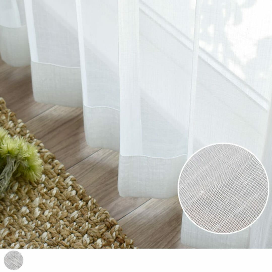 シャリ感があり麻のようなナチュラルな生地感、シンプルデザインの防炎レースカーテンです。 ※写真は全て1.5倍ヒダ(形状記憶あり)です。