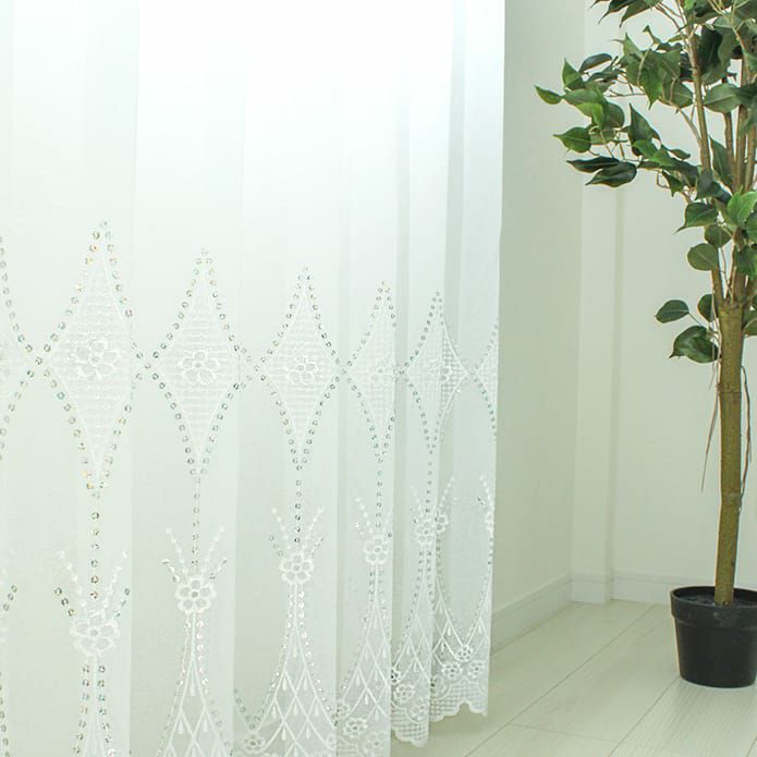 カーテンの仕上がり幅に対して約2倍の生地を使います。たっぷりとしたドレープでレースの優美さが際立ちます。