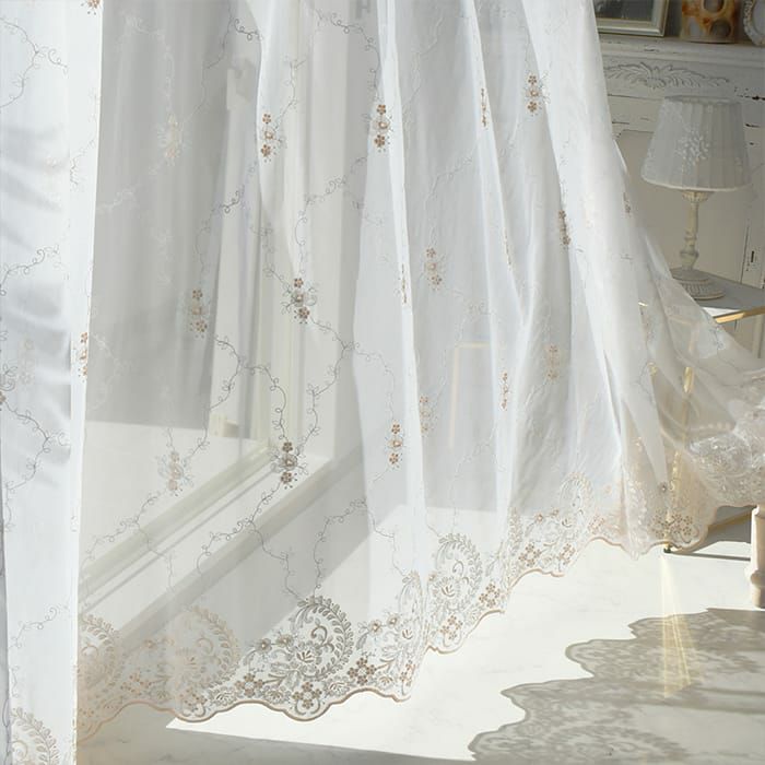 ピンク糸の刺繍で編まれたお花が可愛らしく、 お部屋がお姫様のような清楚で華やかな印象に。