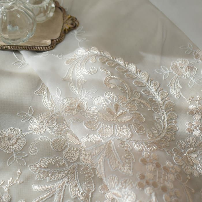 美しい透け感も魅力で、裾がスカラップ仕立てになっているため、風が吹いてふんわりたなびく様子まで美しいです。