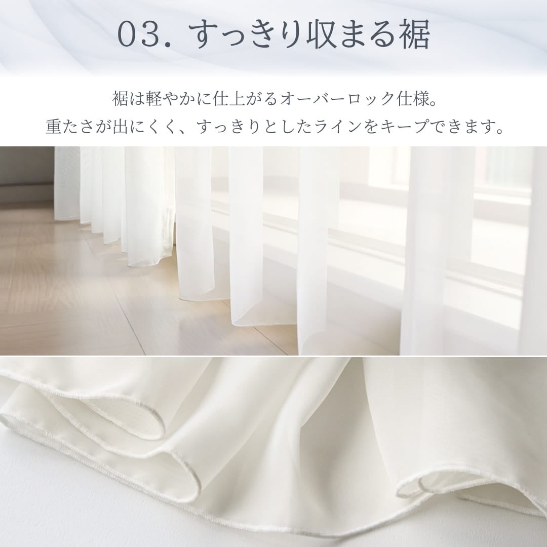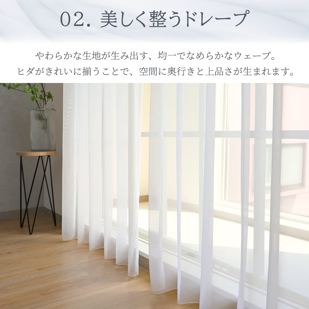 カーテンの仕上がり幅に対して約2倍の生地を使います。たっぷりとしたドレープでレースの優美さが際立ちます。
