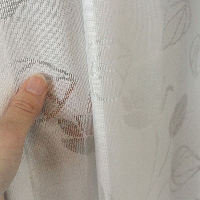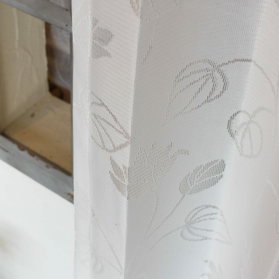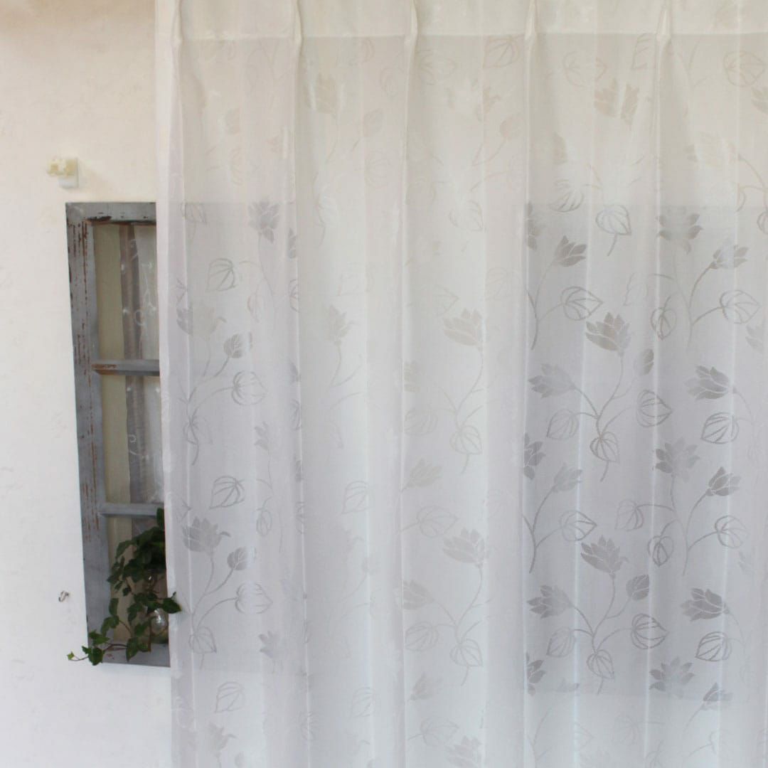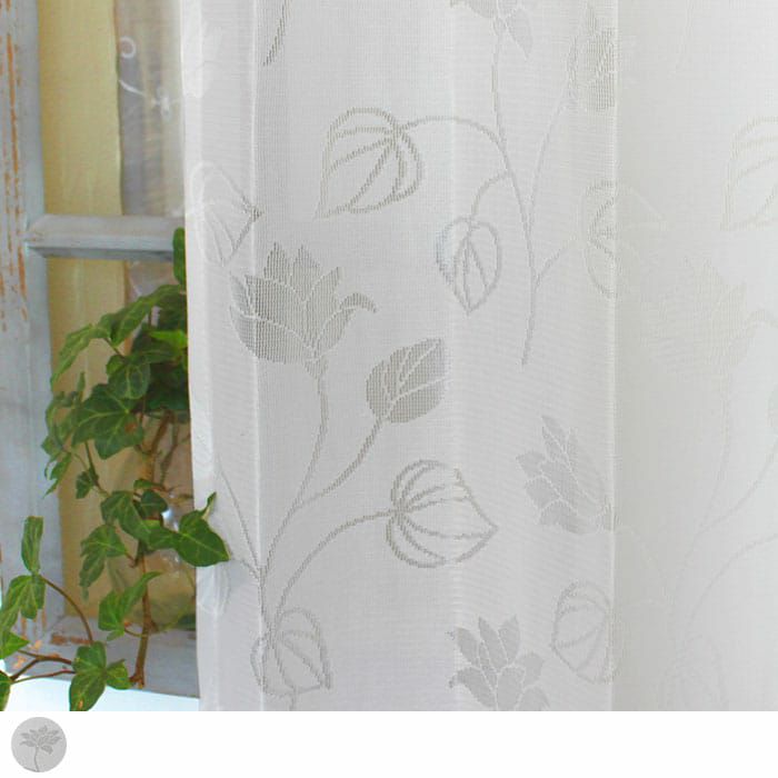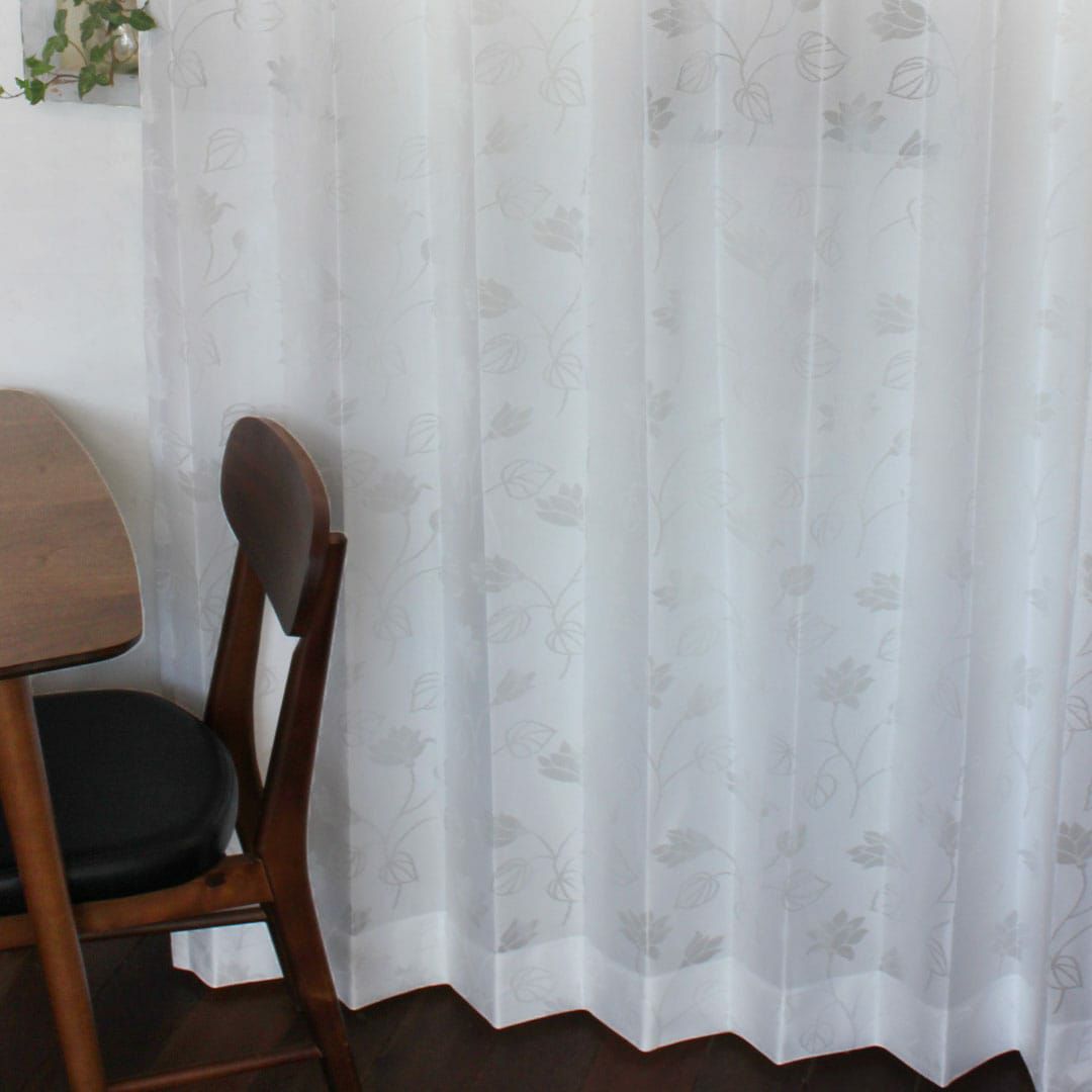プレーンなミラーレースの生地に浮かび上がる花柄のレースカーテン UVカットと日中外から見えないので安心してお過ごしいただけます。
