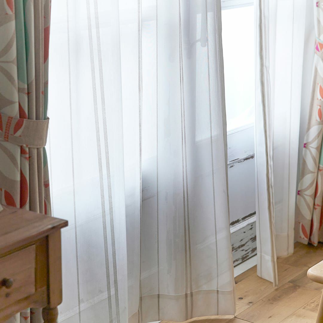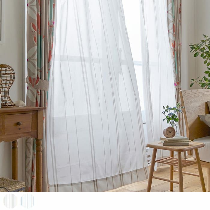 刺し子調のシンプルなストライプ柄の北欧風ボイルレースカーテン 【北欧レースカーテン】ステッチライン
