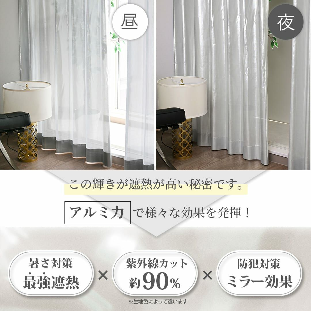 生地はとても軽量で手触りも柔らかく上品です。夜は艶めきが増します。気になる場合はカーテンとの併用をおすすめします。