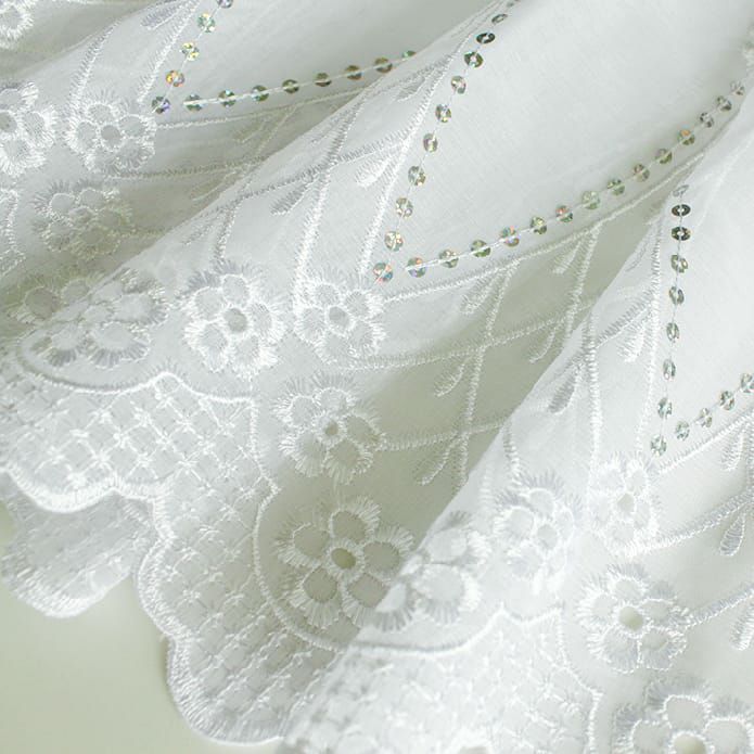 清らかな白の裾刺繍が上品なトルコ刺繍レースカーテン