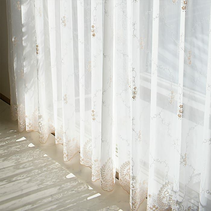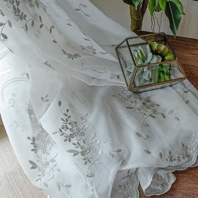 他の画像を見る ボイル生地に白とシルバーの糸で丁寧に刺繍された、お花とリーフ柄が上品なボイルレースカーテン 【トルコレースカーテン】 リエール お気に入りに追加する ¥ 7,600 税込 シームレス 洗濯機 無料サンプル請求