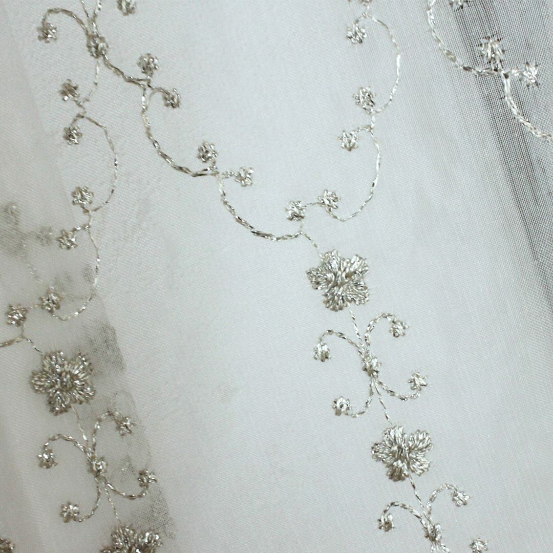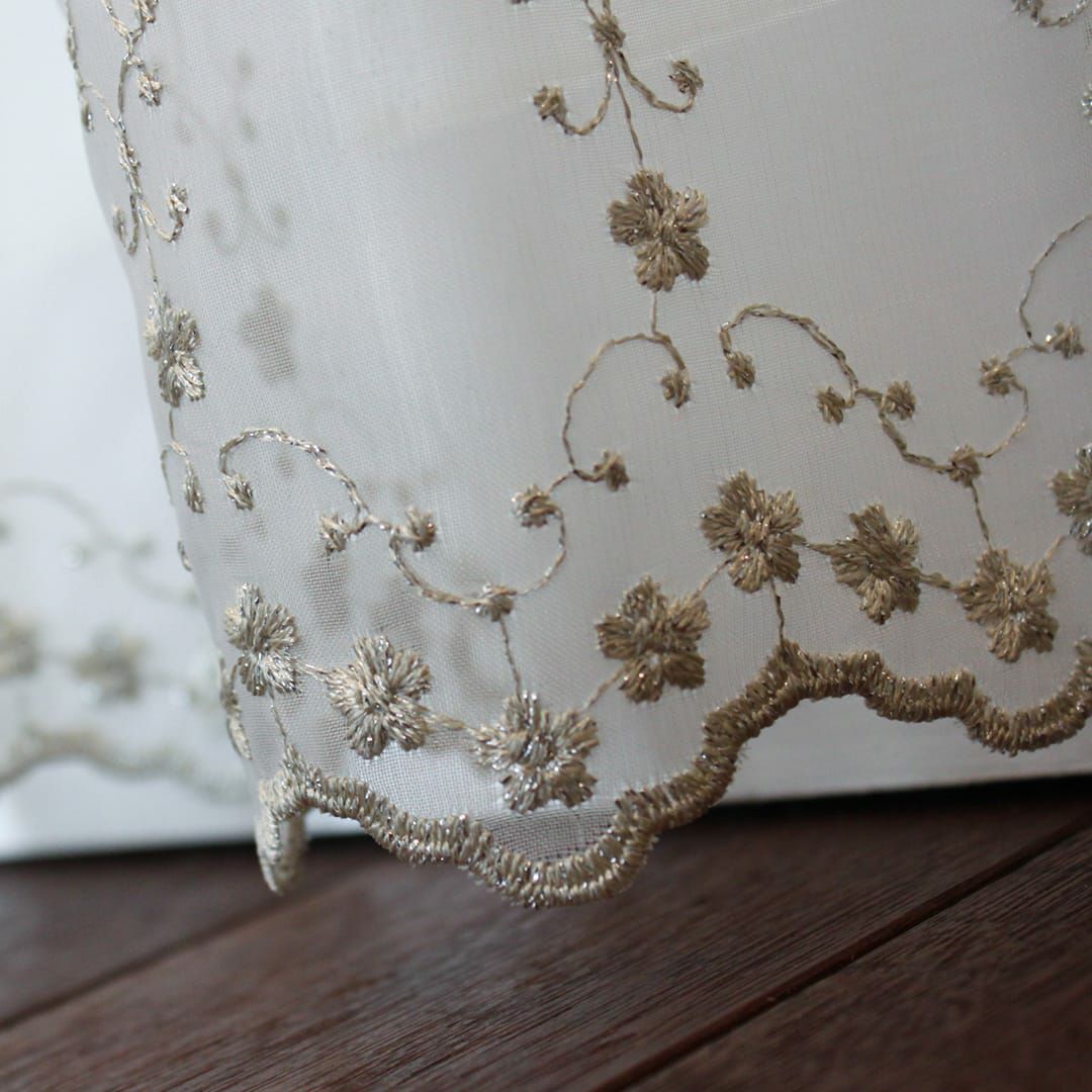 裾のスカラップ刺繍でさらに可憐に。 全体に散りばめられた細やかな刺繍が上質な空間にしてくれます