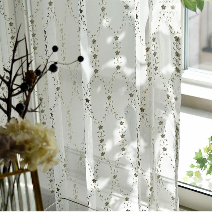 カーテンの仕上がり幅に対して約2倍の生地を使います。たっぷりとしたドレープでレースの優美さが際立ちます。