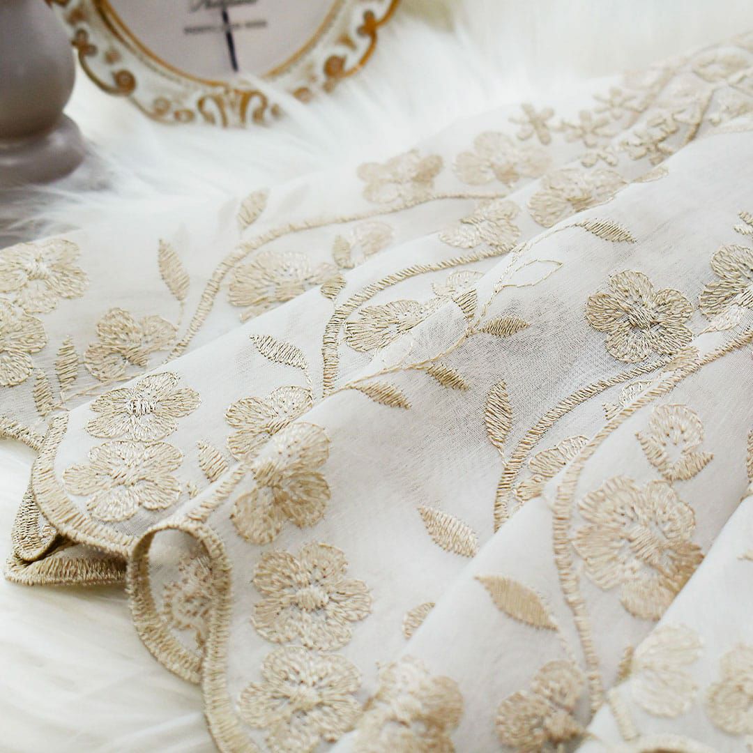 伸びやかなボタニカルデザイン防炎トルコ刺繍レース