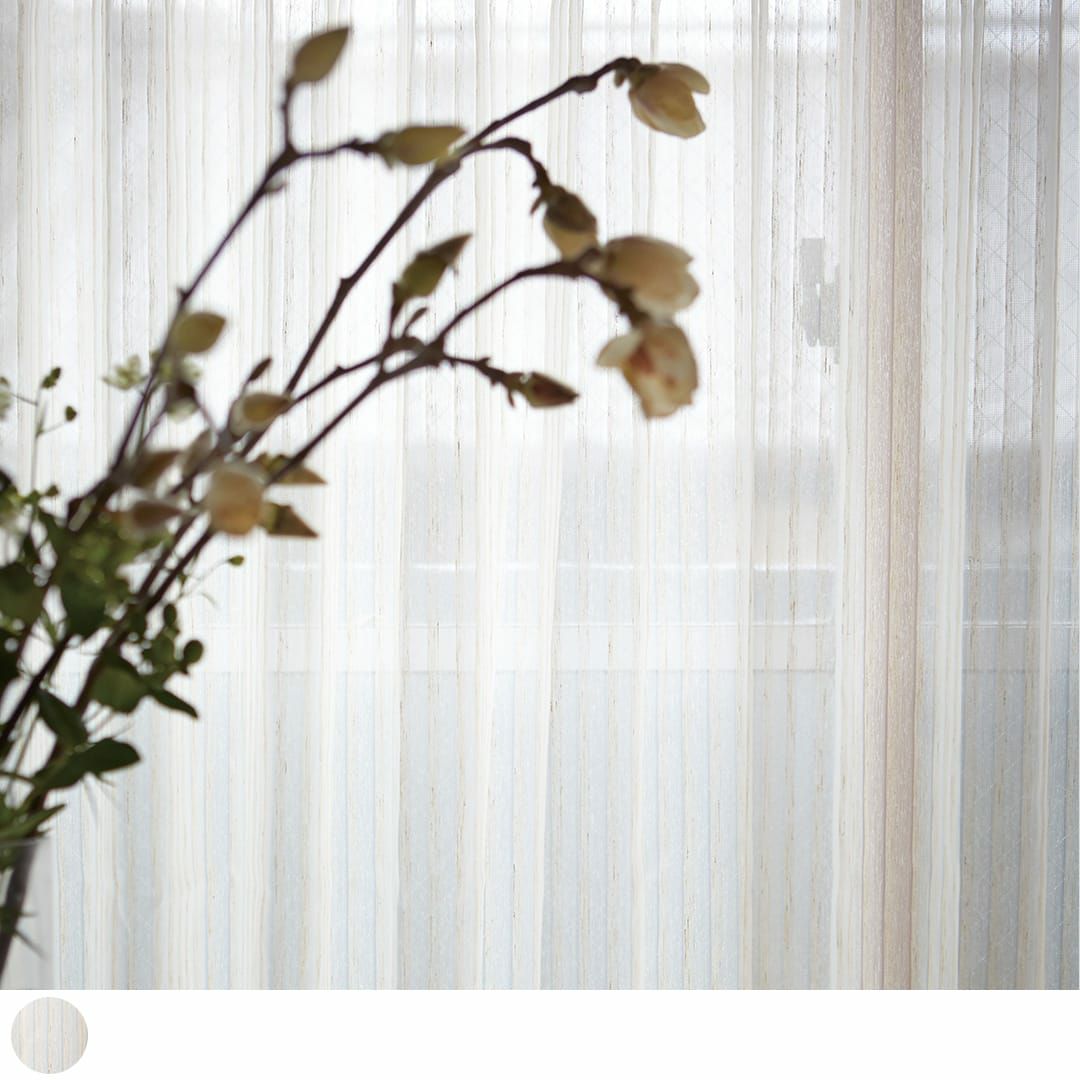 リネン特有のネップを織り込んだ無地の縦ストライプ柄。 緩やかなうねりと素朴な素材感がマッチしたナチュラル風レースカーテンです。 麻(リネン)7%なので洗濯機でも洗えてお手入れも簡単。 光を浴びるシルエットが優しく揺れます。
