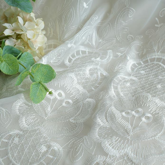 上品な刺繍と美しい透け感のレース