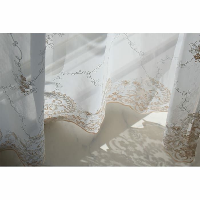 他の画像を見る ボイル生地に白とシルバーの糸で丁寧に刺繍された、お花とリーフ柄が上品なボイルレースカーテン 【トルコレースカーテン】 リエール お気に入りに追加する ¥ 7,600 税込 シームレス 洗濯機 無料サンプル請求