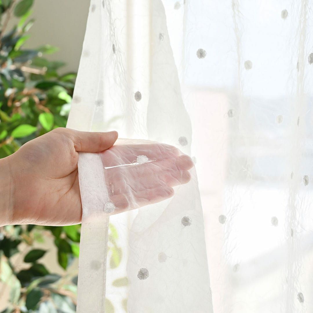 他の画像を見る 柔らかく優しい色合いの生地にホワイトの糸で刺繍されたドット柄レースカーテン 【レースカーテン】モエ お気に入りに追加する ¥ 8,780 税込 シームレス 洗濯機 裾すっきり 無料サンプル請求
