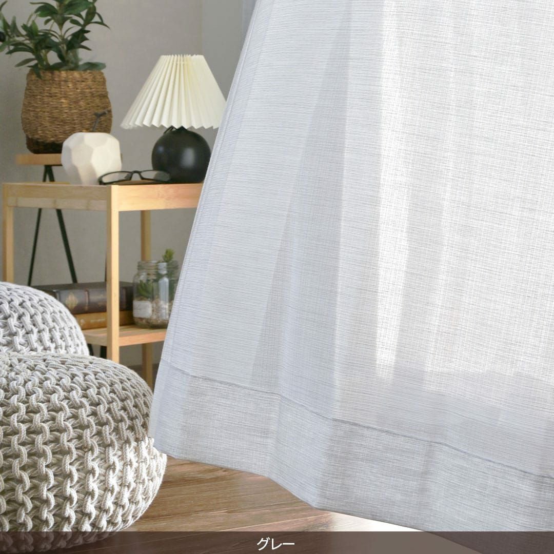 麻のような質感のリネンライクレースカーテン。シームレスだから、幅が大きいワイドな窓にも継ぎ目なしで作れます。