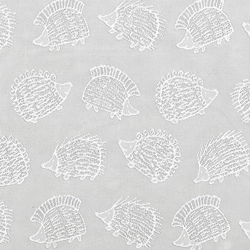 ジャカード織りのレースで、ハリネズミたちが浮き上がったような立体的な仕上がりに。 ほんのり光沢のあるピュアホワイトのレースは清潔感たっぷりです。