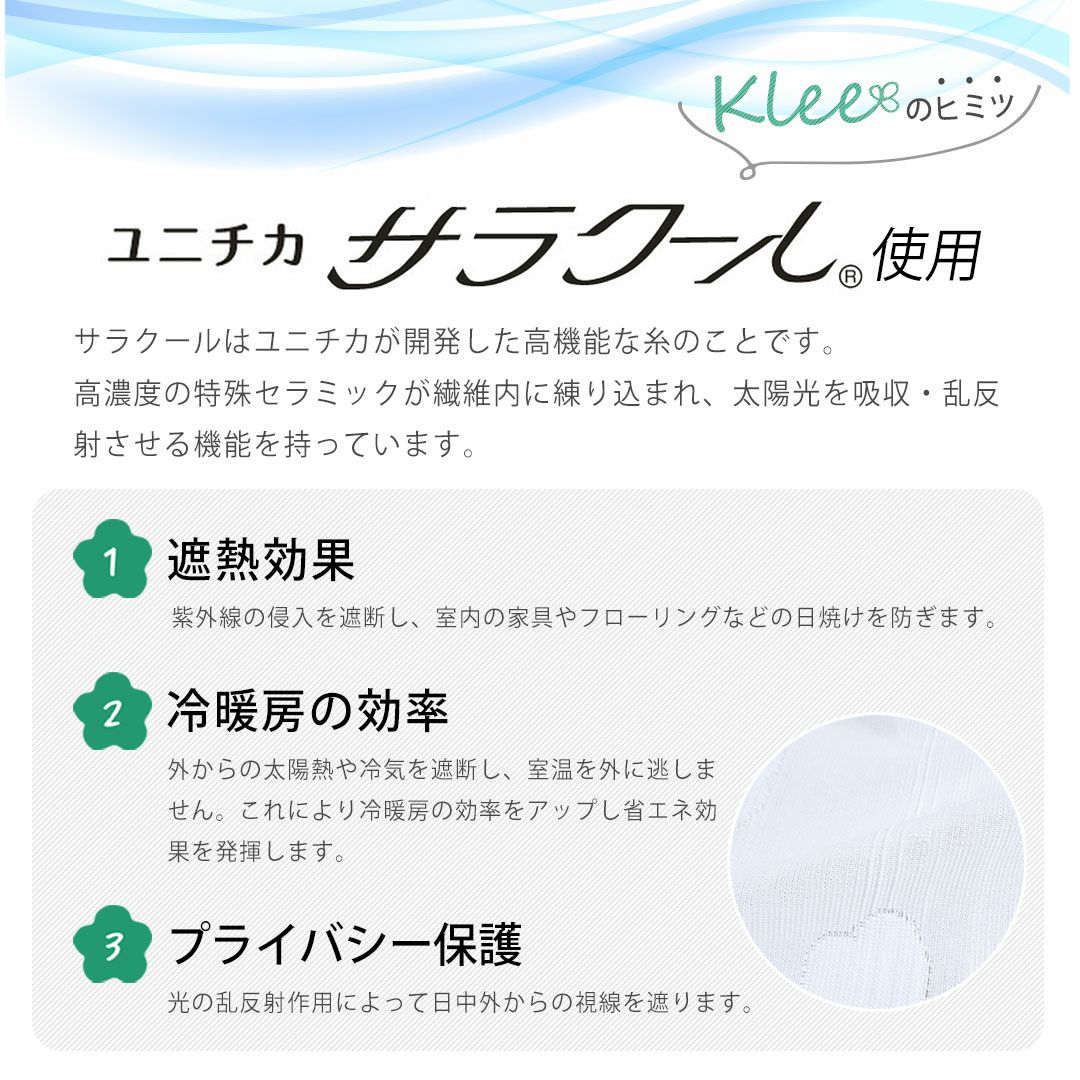 ユニチカの「サラクール」を使用した機能性レースカーテンです。 ベースとクローバーの柄の織り方を変えて立体感のある仕上がり。風に乗ってクローバーが舞い落ちてきそうな様子が表現されています。 幸運を運んでくれる四つ葉のクローバーと人や動物に踏まれてやがて四つ葉になる三つ葉のクローバー。窓を開けてしあわせを引き寄せませんか?