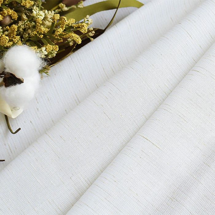 UVカットや遮熱など嬉しい機能がついて、綿麻混でナチュラルな雰囲気が楽しめるレースカーテンです。さりげなくブラウン系の糸がネップのように織り込まれており、天然素材のような風合いがある生地感です。 ナチュラルな色合いがお部屋を柔らかい温もりある空間にしてくれます。 ※すべての写真の仕様は1.5倍ヒダ スタンダード縫製(形状記憶なし)です。