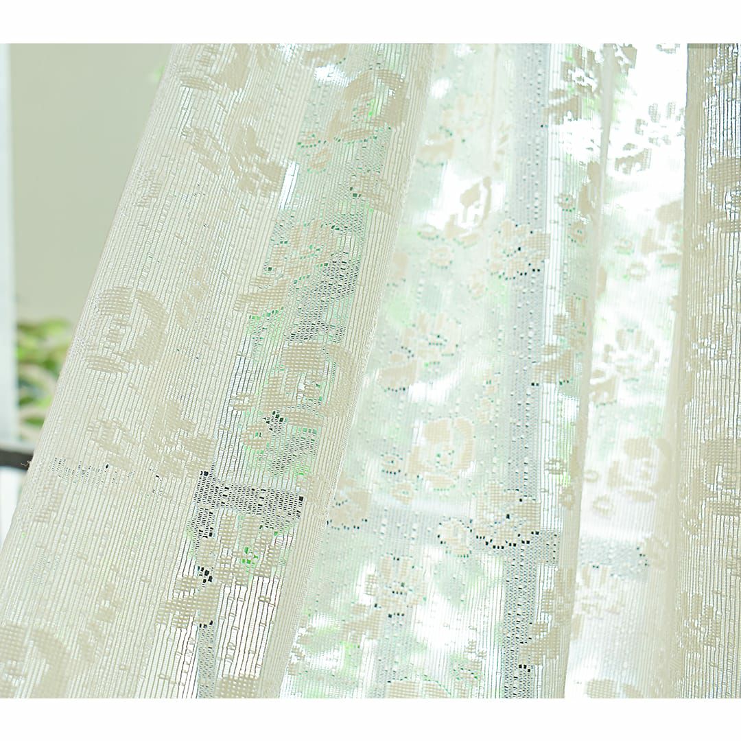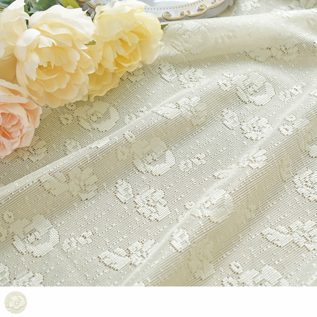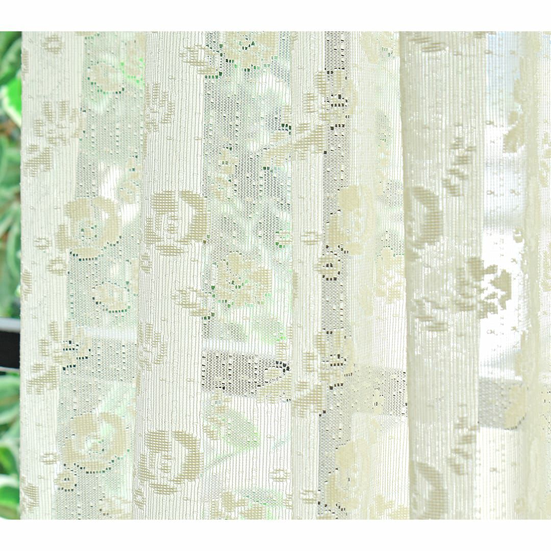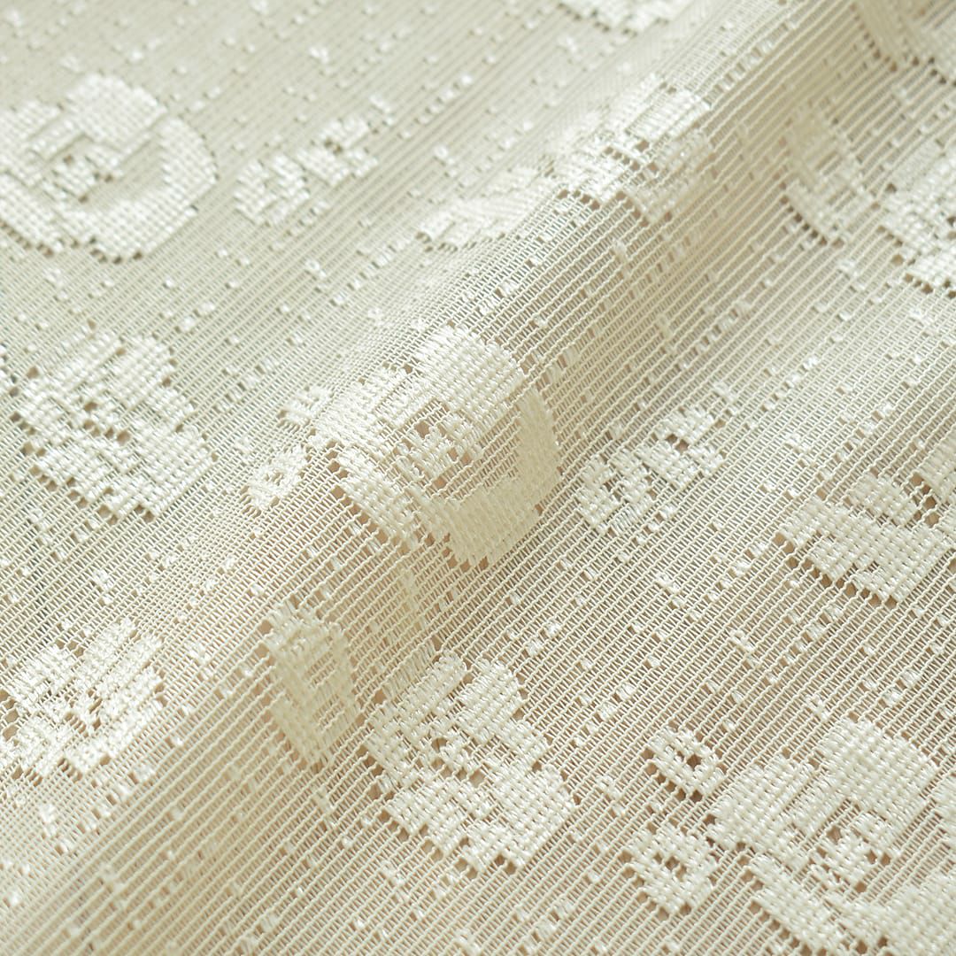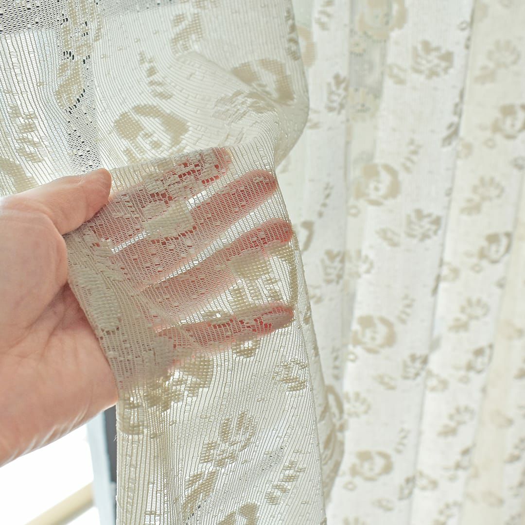 アイボリーの糸で編まれたバラ柄レースカーテン