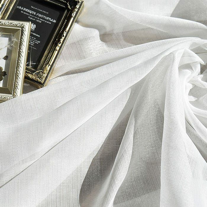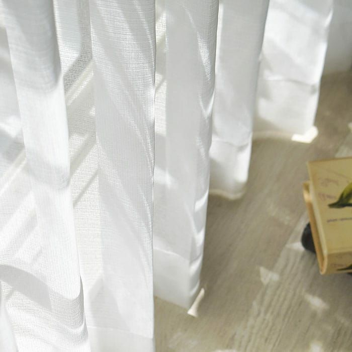 程よい透け感で開放感のあるお部屋に。光沢のある糸も織り込まれていて織りの表情も楽しめます。 少しドライなさらりとした手触りです。