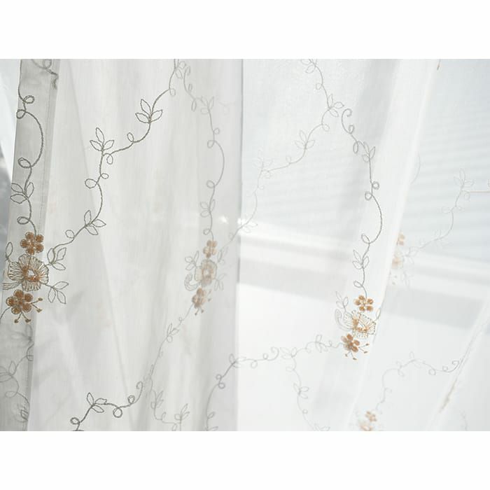 ピンク糸の刺繍で編まれたお花が可愛らしく、 お部屋がお姫様のような清楚で華やかな印象に。