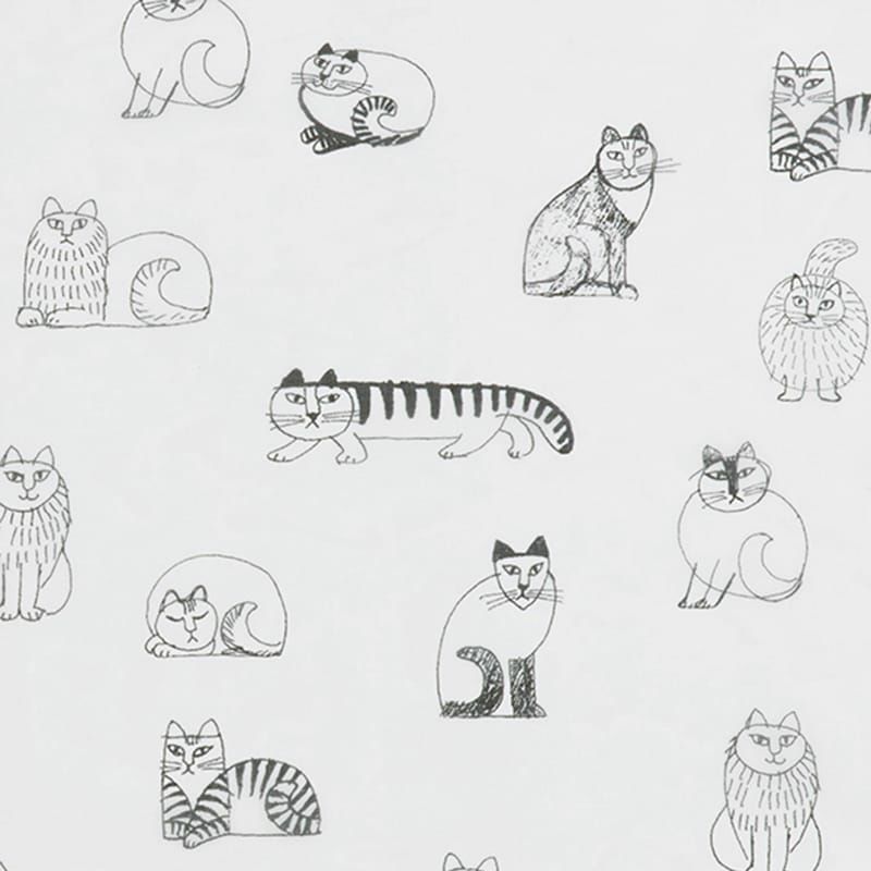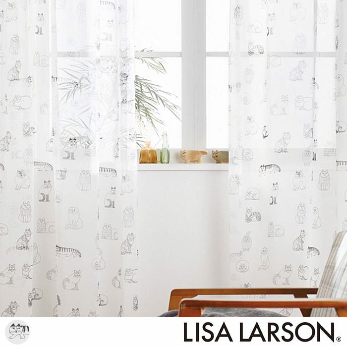スケッチした手書きの猫たちをシックなカラーでプリント。 かわいいのに大人っぽい空間を演出します。 ボイル地のさらさらとした柔らかい手触りで光を取り入れてくれます。