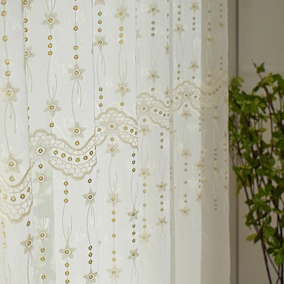 裾のスカラップ刺繍がとってもゴージャスで上品なヨーロピアンな空間を演出します。