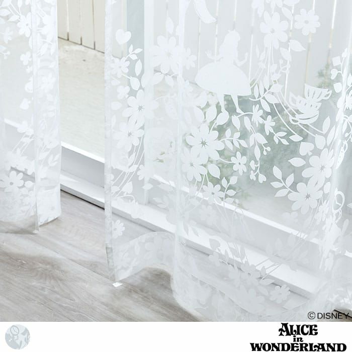 アリスとチェシャ猫と時計ウサギが隠れたシアーレースカーテン