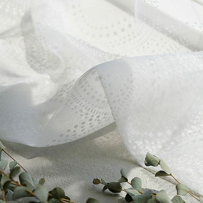 生地全体に広がるバブル柄。透明感がありとっても軽やかです。 フロントレースにしても楽しめるレースカーテンです。
