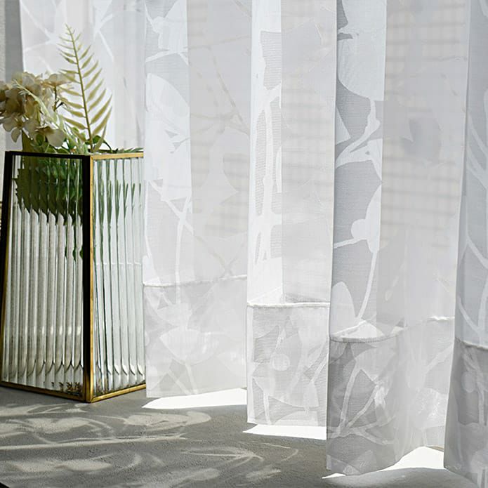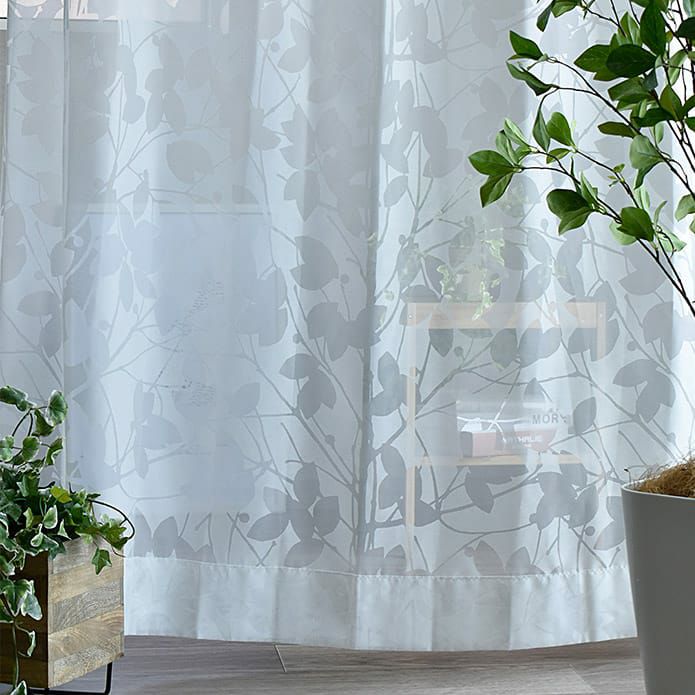 リーフ柄が優しく浮かび上がるオパールレース 透け感とデザインが楽しめるレースカーテンです。 無地のドレープと合わせるたフロントレースがおススメです。 柄が映えてオシャレなお部屋になります。