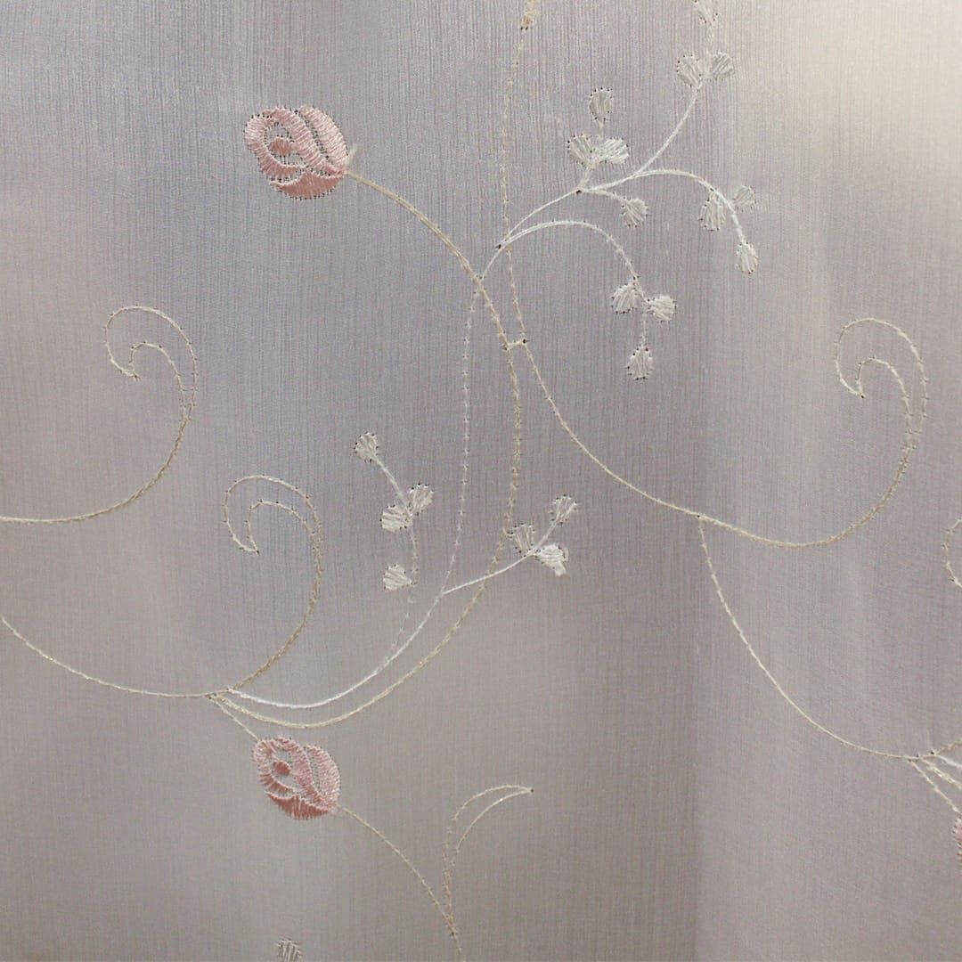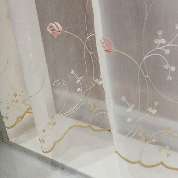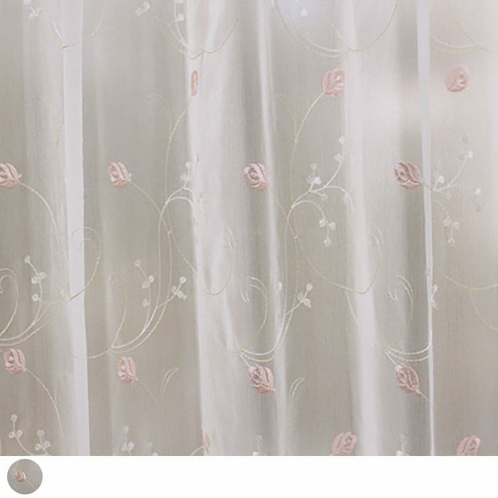 3色のやわらかな濃淡の刺繍が華やかで愛らしい。 まどろむ夢心地のお部屋でリラックスできるレースカーテンです♪