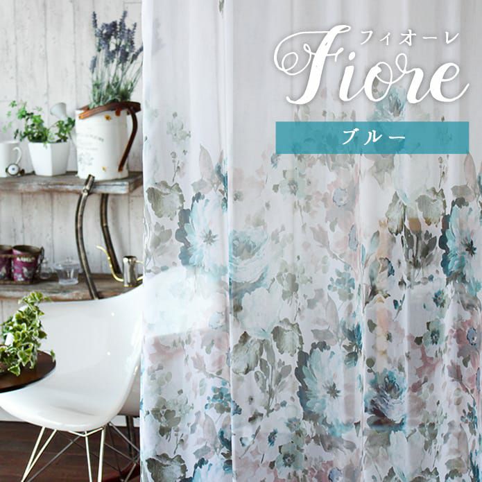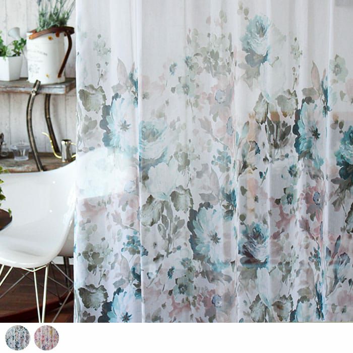 美しい水彩調の花柄プリント。おしゃれなレースをお探しの方におすすめです! 【トルコレースカーテン】 フィオーレ