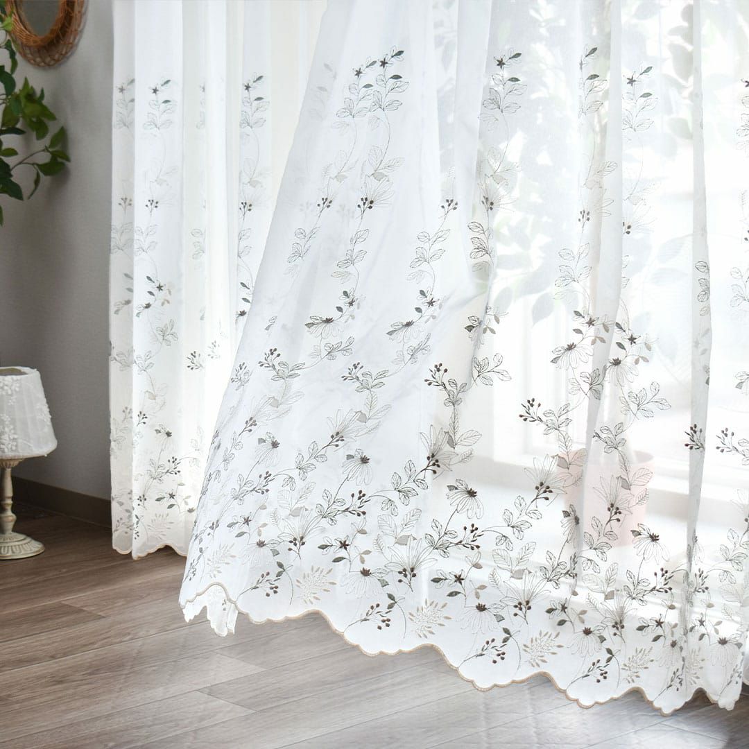 やさしい草花柄をあしらったナチュラル刺繍レースカーテン 【トルコレースカーテン】パセオ