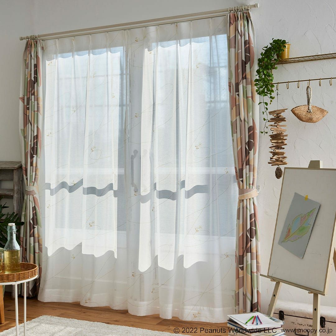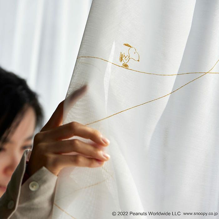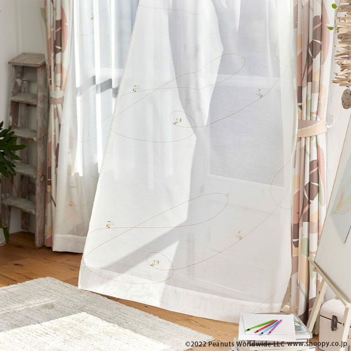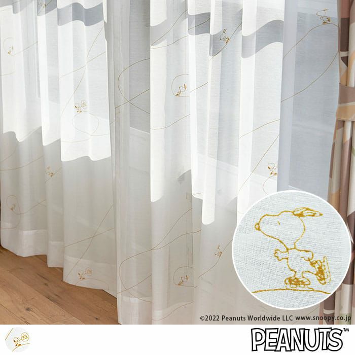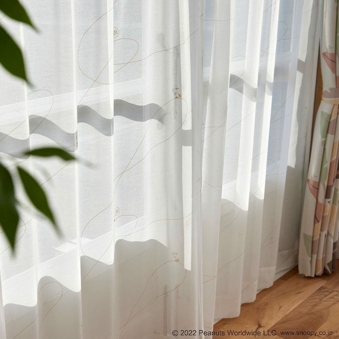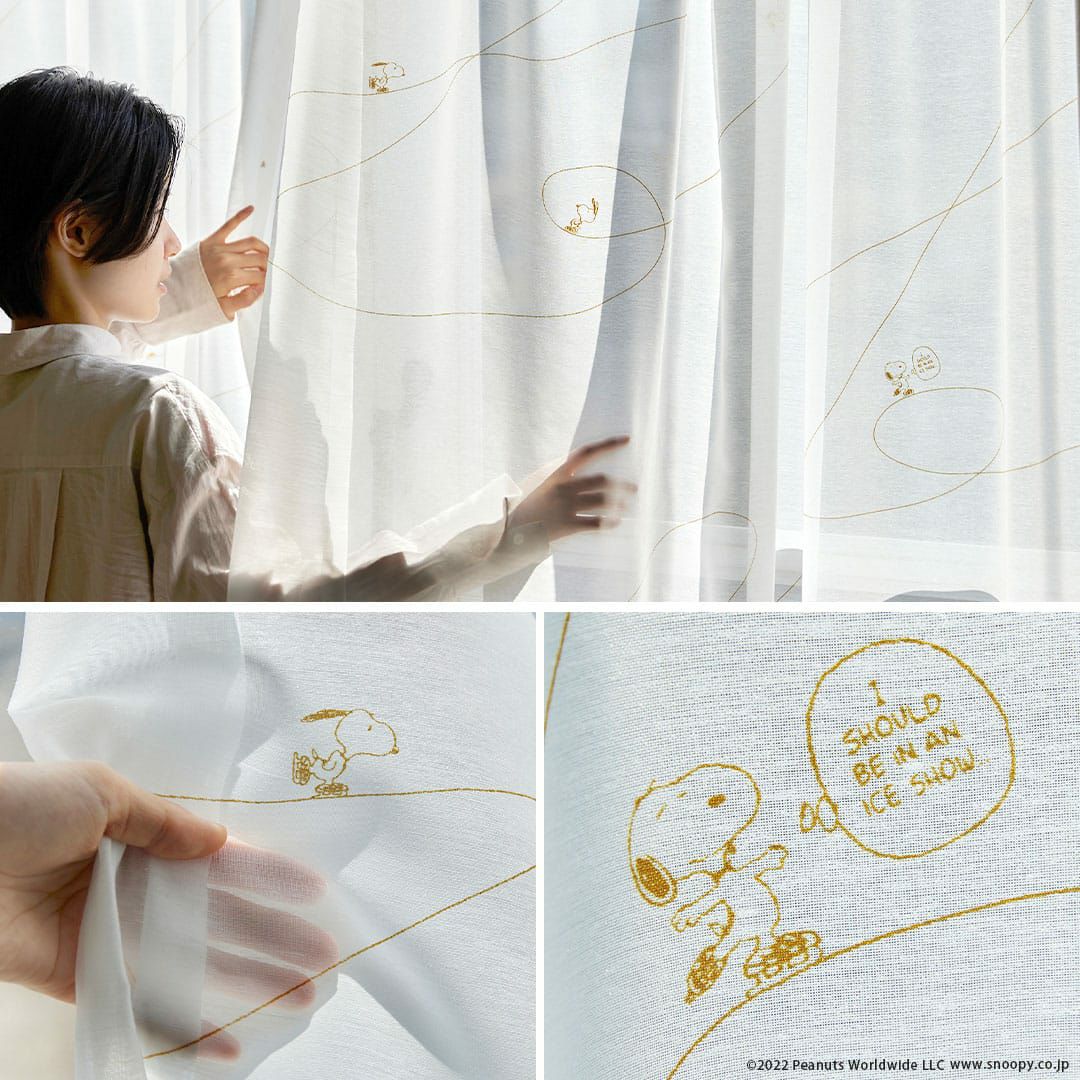 スヌーピーとアイスリンクに描かれたト音記号がデザインされたボイルレースカーテン 【レースカーテン】ジークレフボイル|ピーナッツ