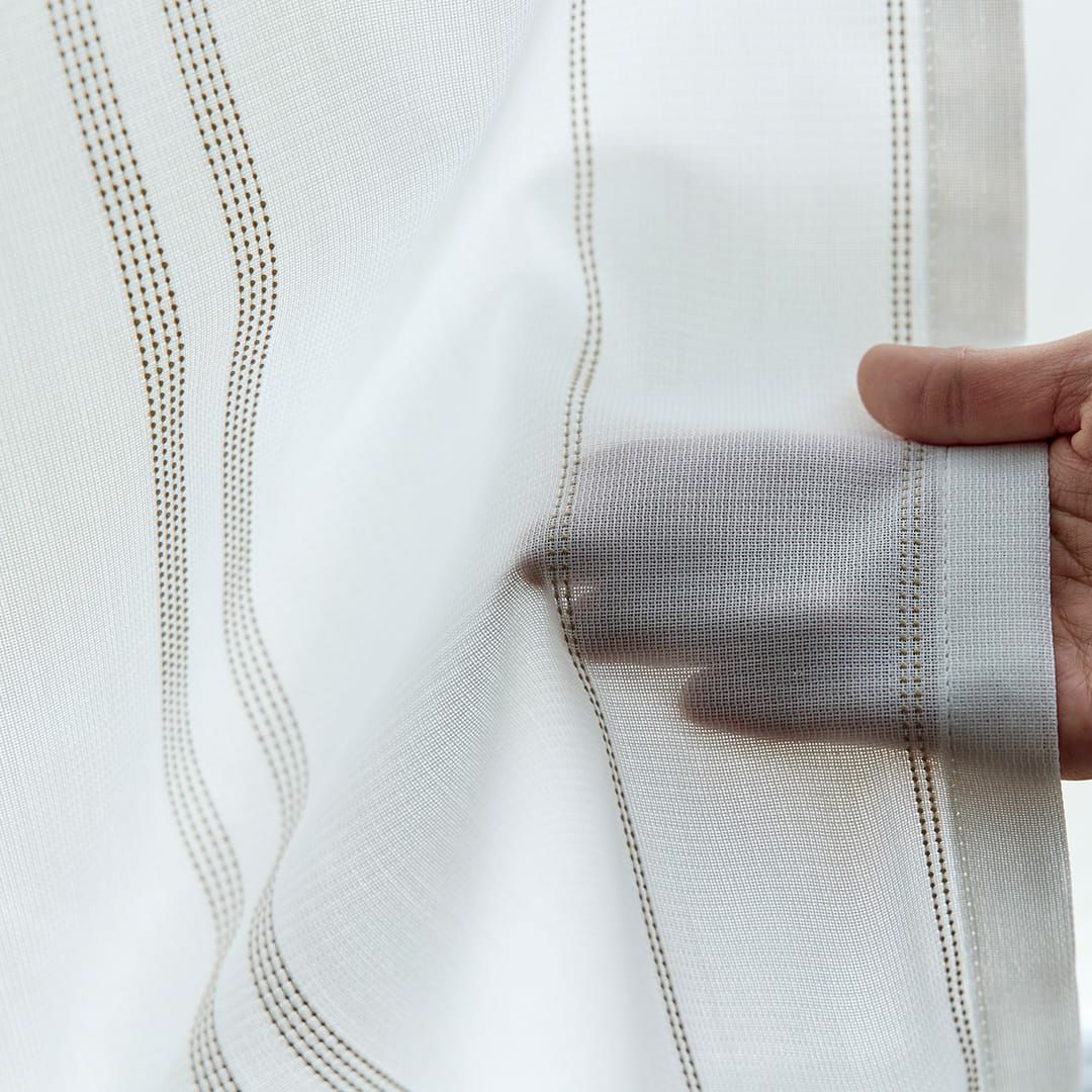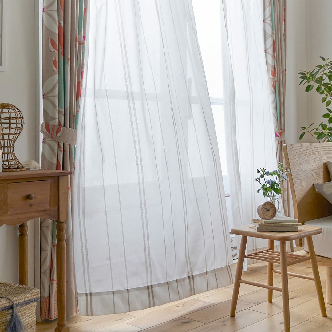 刺し子調のシンプルなストライプ柄の北欧風ボイルレースカーテン 【北欧レースカーテン】ステッチライン