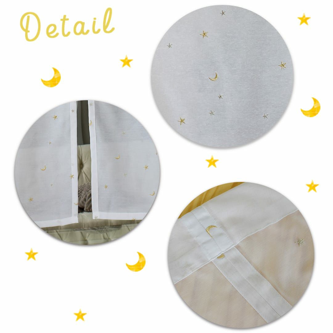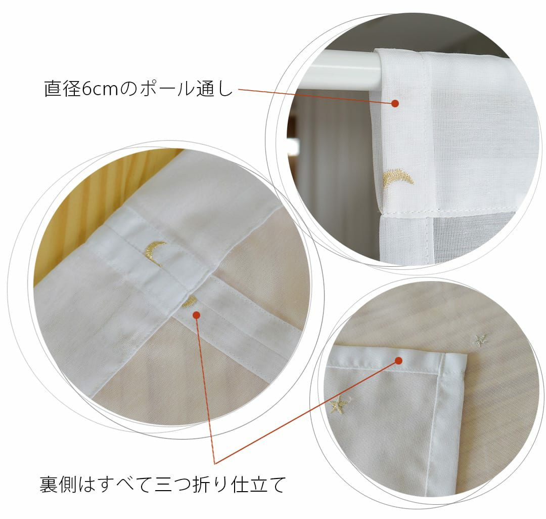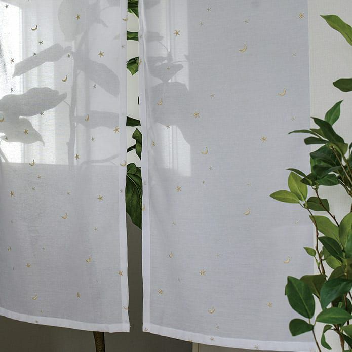 かわいい小さな刺繍レースが優しい風に吹かれてキラキラと揺れます! レースだから程よく光も取り入れます。 すやすやロケットのカーテンとトータルコーディネートもおすすめです!
