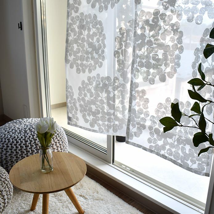 北欧ブランドの透け感が美しい大きなアジサイ柄レース 【北欧のれん】レースフロート(幅85cm×丈150cm)|岡理恵子