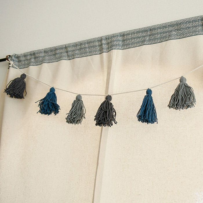 取り外し可能なタッセルガーランドがついた 男女問わず使えるおしゃれなのれん
