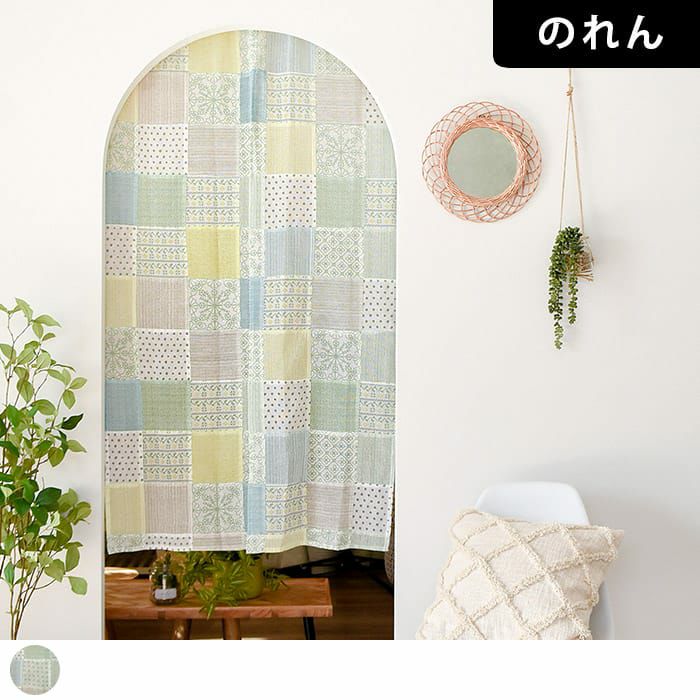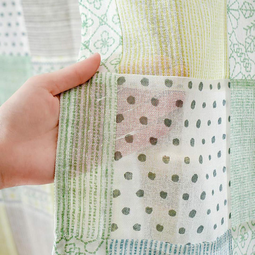 グリーンやイエローを基調とした爽やかなデザインのレース地をパッチワーク。 淡いペールトーンで統一されていてまとまりがあります。 リビング・キッチン・寝室の間仕切りや、シューズクロークの目隠しとしても!