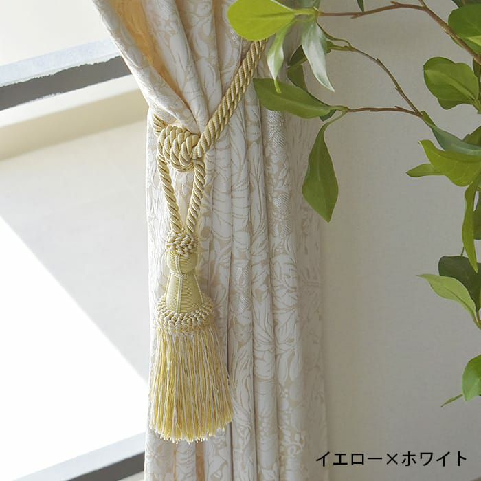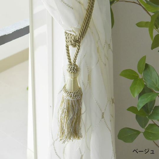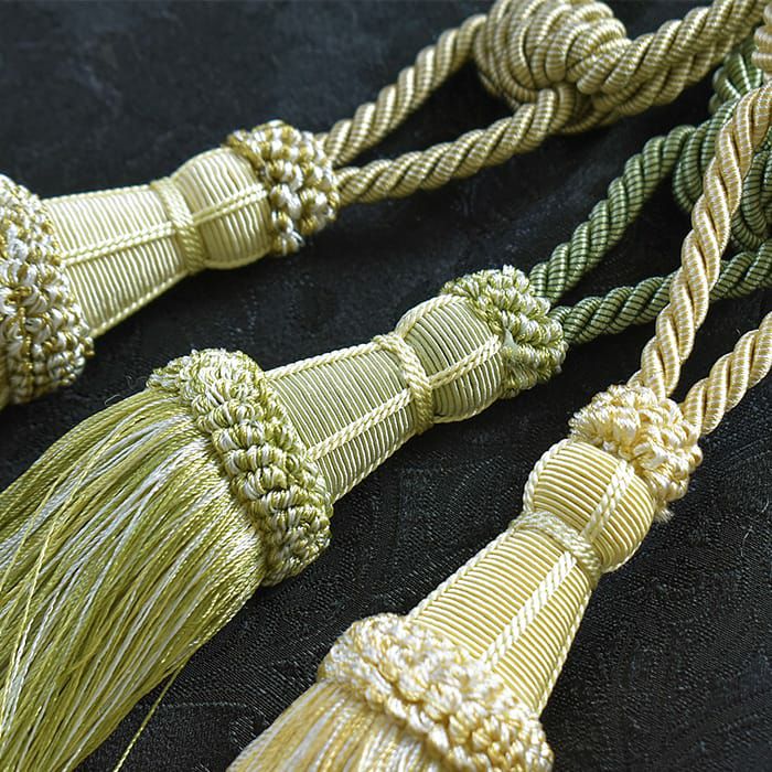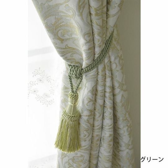 1つ房が付いたタッセルです。光沢が糸で作られていておしゃれでカーテンをグレードアップさせてくれます。 5色とも2色の糸を使用して作られている為、色に深みがでて重厚感がアップします。エレガントスタイルやクラシック、アンティークスタイルのカーテンにピッタリです。