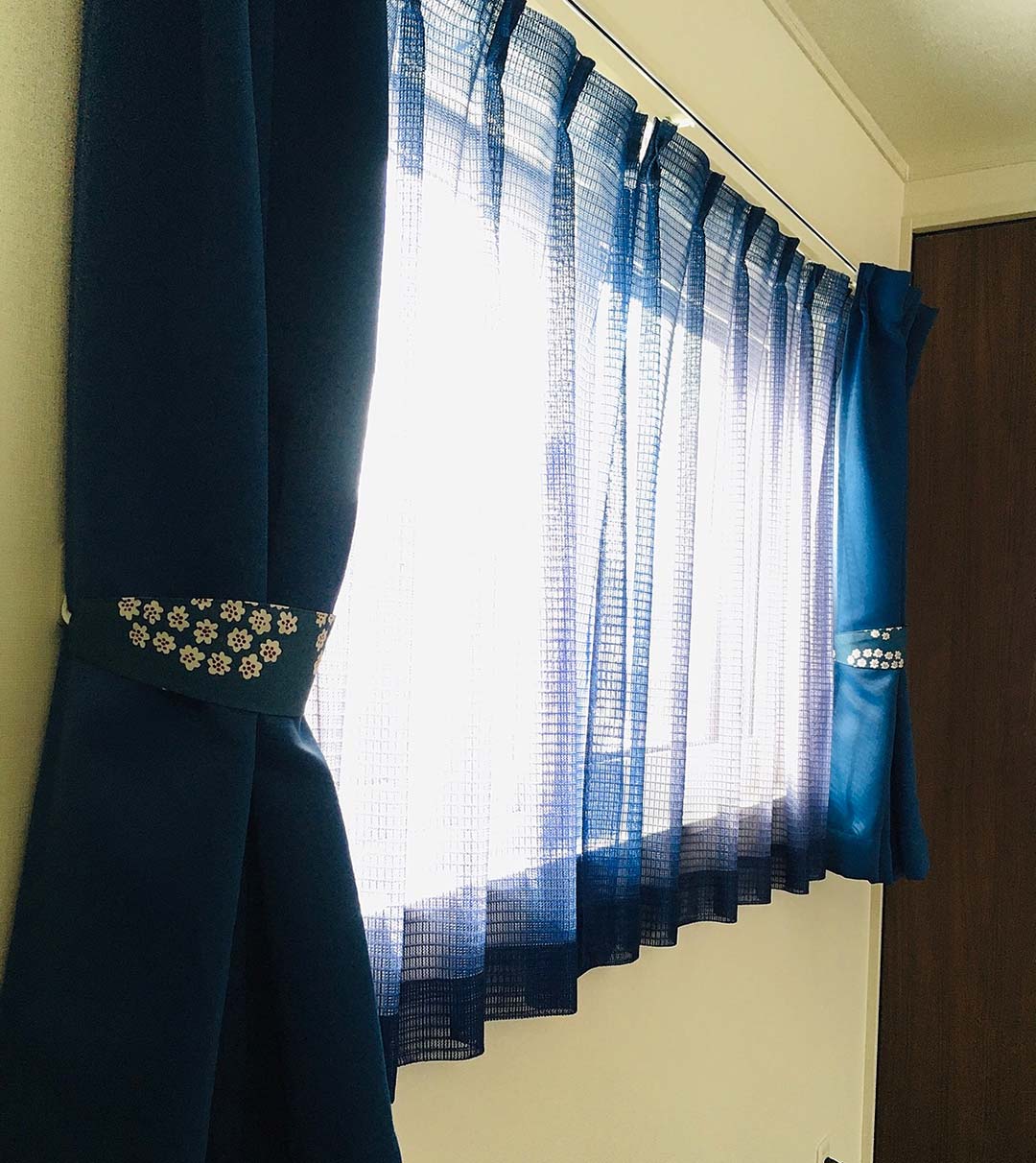 青色の無地のカーテンに合うタッセルを 探していたところ、 こちらの商品を見つけました! シンプルな寝室に小花の小さなアクセント、 気に入っています!