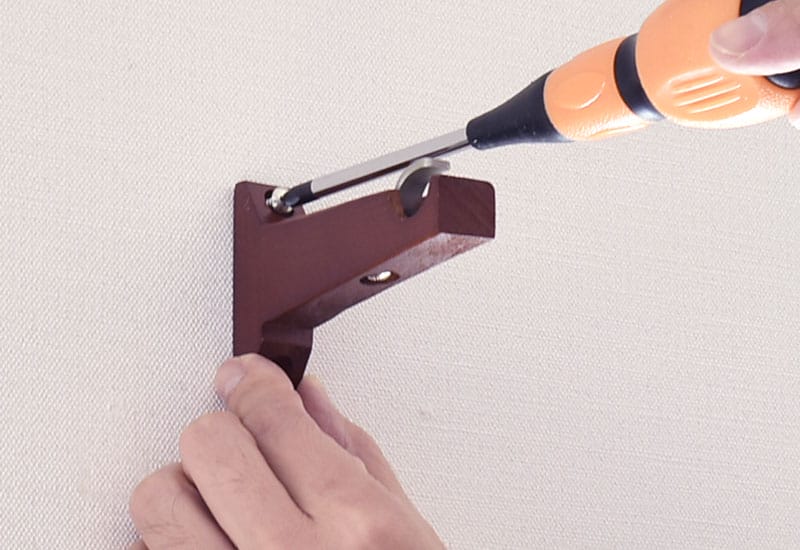 (2)壁に下地があることを確認した後、ブラケットを取り付けます。上のネジ止めをした後、下のネジ止めをします。