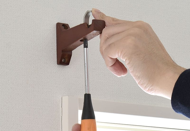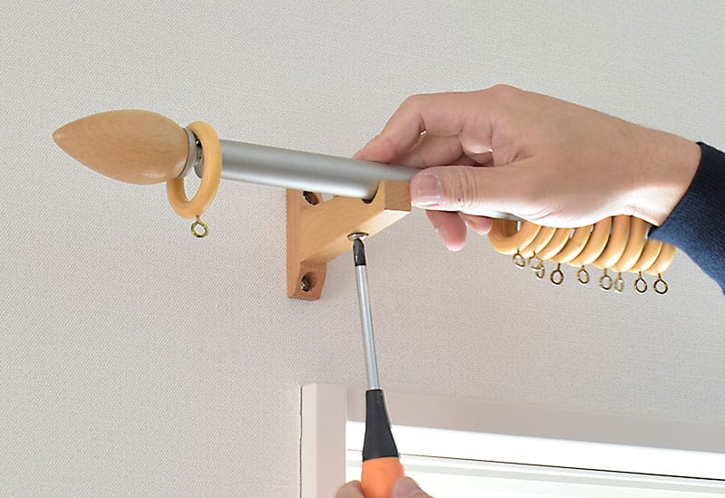 (6)ブラケットの下部にあるネジをしめてできあがりです。お好きなカーテンを取り付けてください。