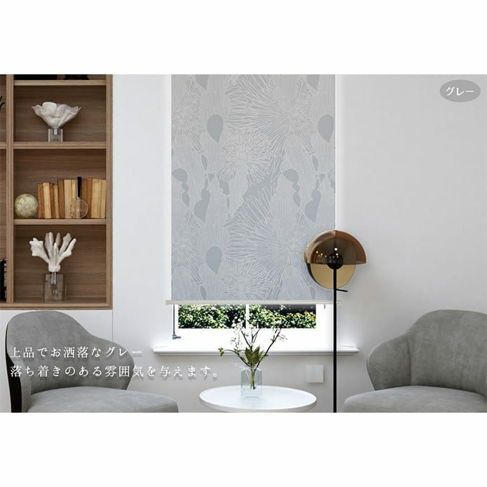 複雑な柄の中にもスタイリッシュで大人シックな雰囲気を醸し出しています。 色味が落ち着いているので、モノトーンでコーディネートされたお部屋や 上品で洗練されたお部屋にそっと馴染みます。 すっきりコンパクトなロールスクリーンはカーテンとおそろいで小窓に設置したり、 シューズクロークなどの目隠しや間仕切りなど使い方いろいろ!