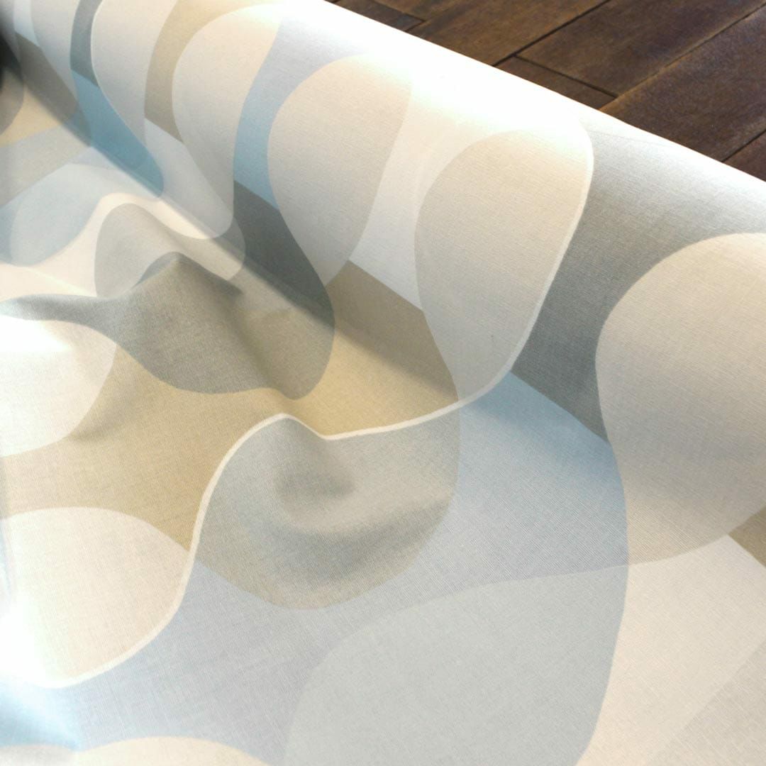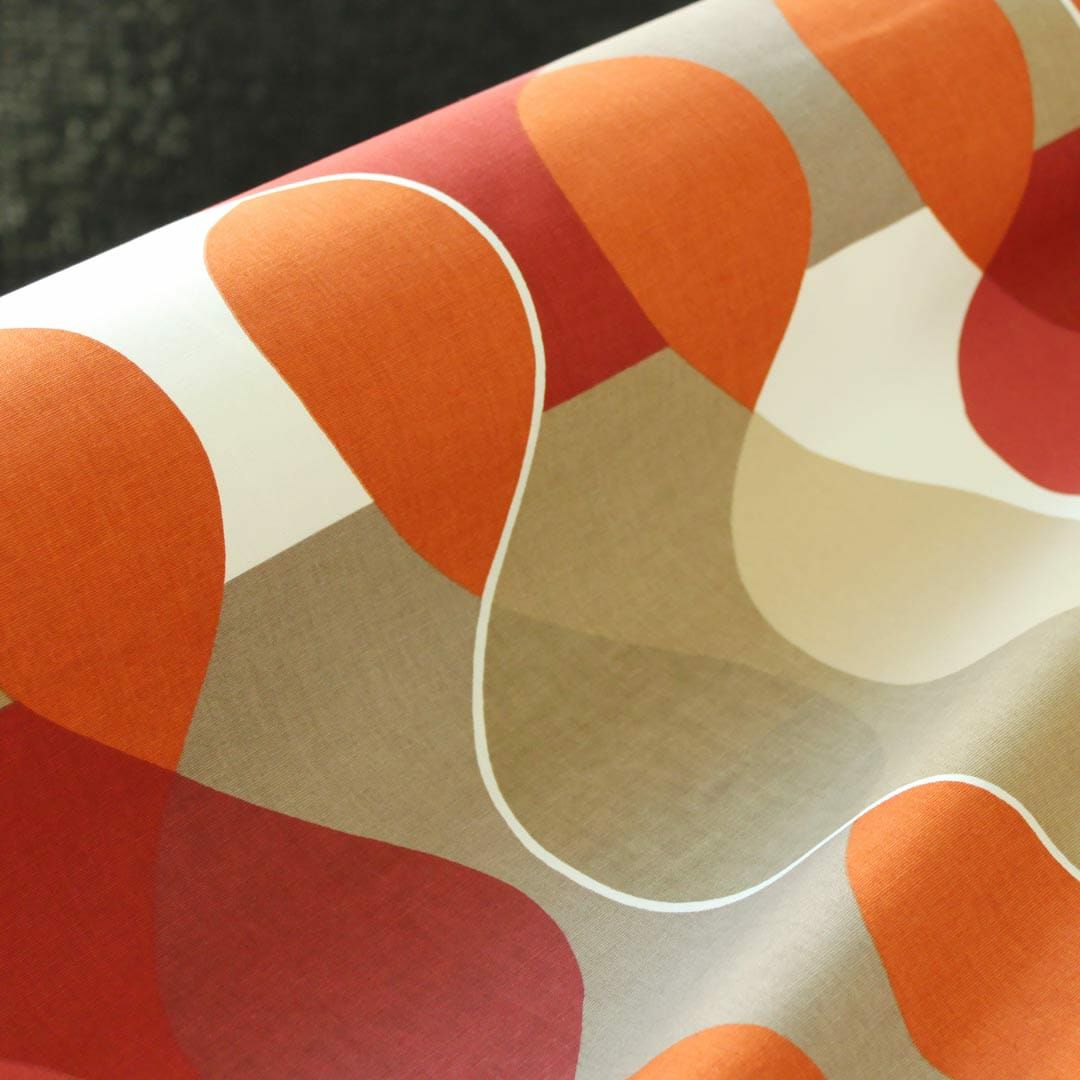 デザイナー Mona bjork(モナ・ビヨルク)による名作。 曲線と色が交じりあったユニークなデザイン ボラスコットンの中でも特に有名で代表的な生地です