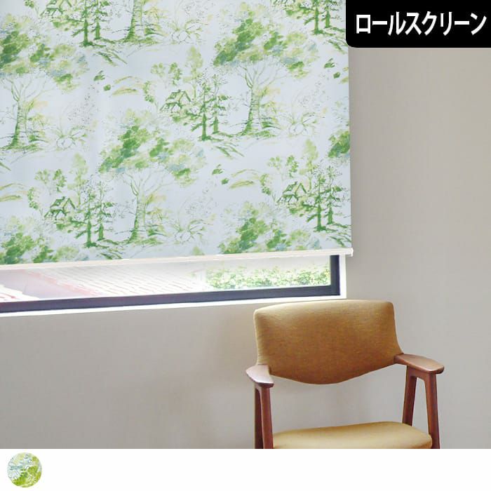 水彩タッチの森の風景に癒され、リラックスできます。 想像力膨らむデザインは、子供部屋にもピッタリです。 すっきりコンパクトなロールスクリーンはカーテンとおそろいで小窓に設置したり、 シューズクロークなどの目隠しや間仕切りなど使い方いろいろ!
