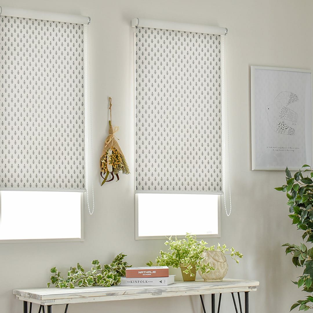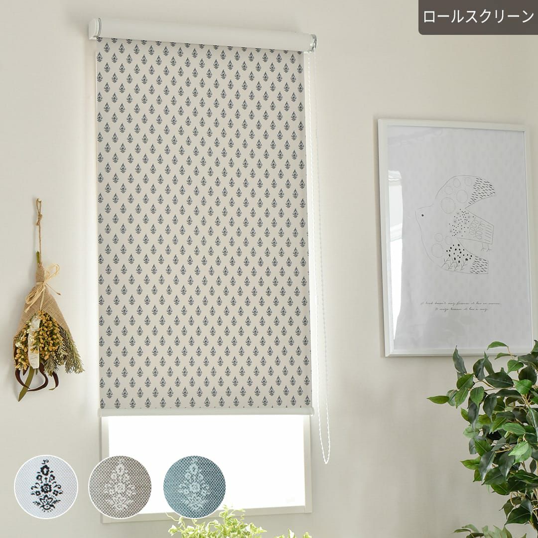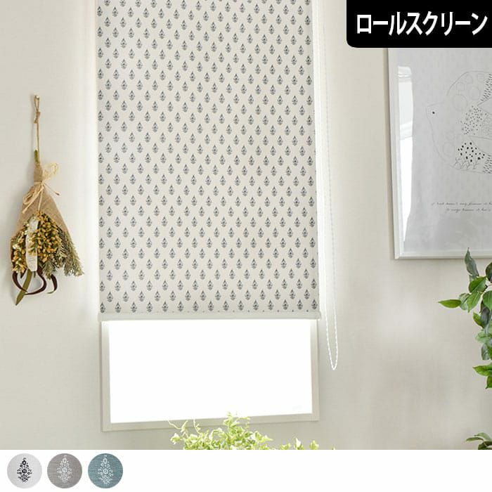 かわいい小さな模様がほっこりするテキスタイルです。 フレンチカントリー風のお部屋にピッタリです! すっきりコンパクトなロールスクリーンはカーテンとおそろいで小窓に設置したり、シューズクロークなどの目隠しや間仕切りなど使い方いろいろ!