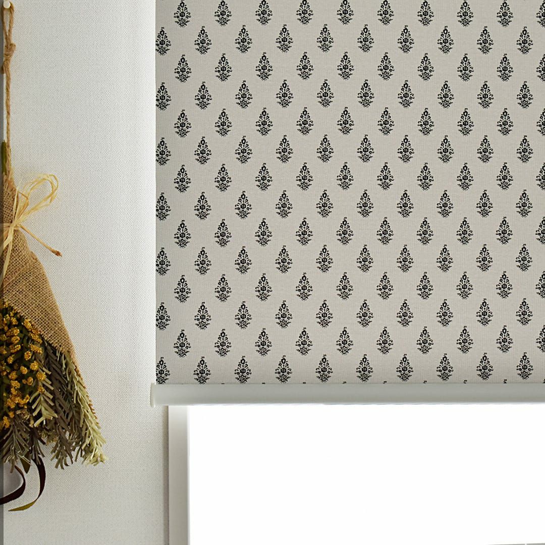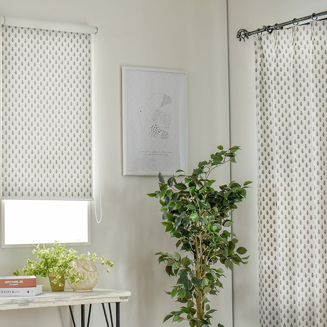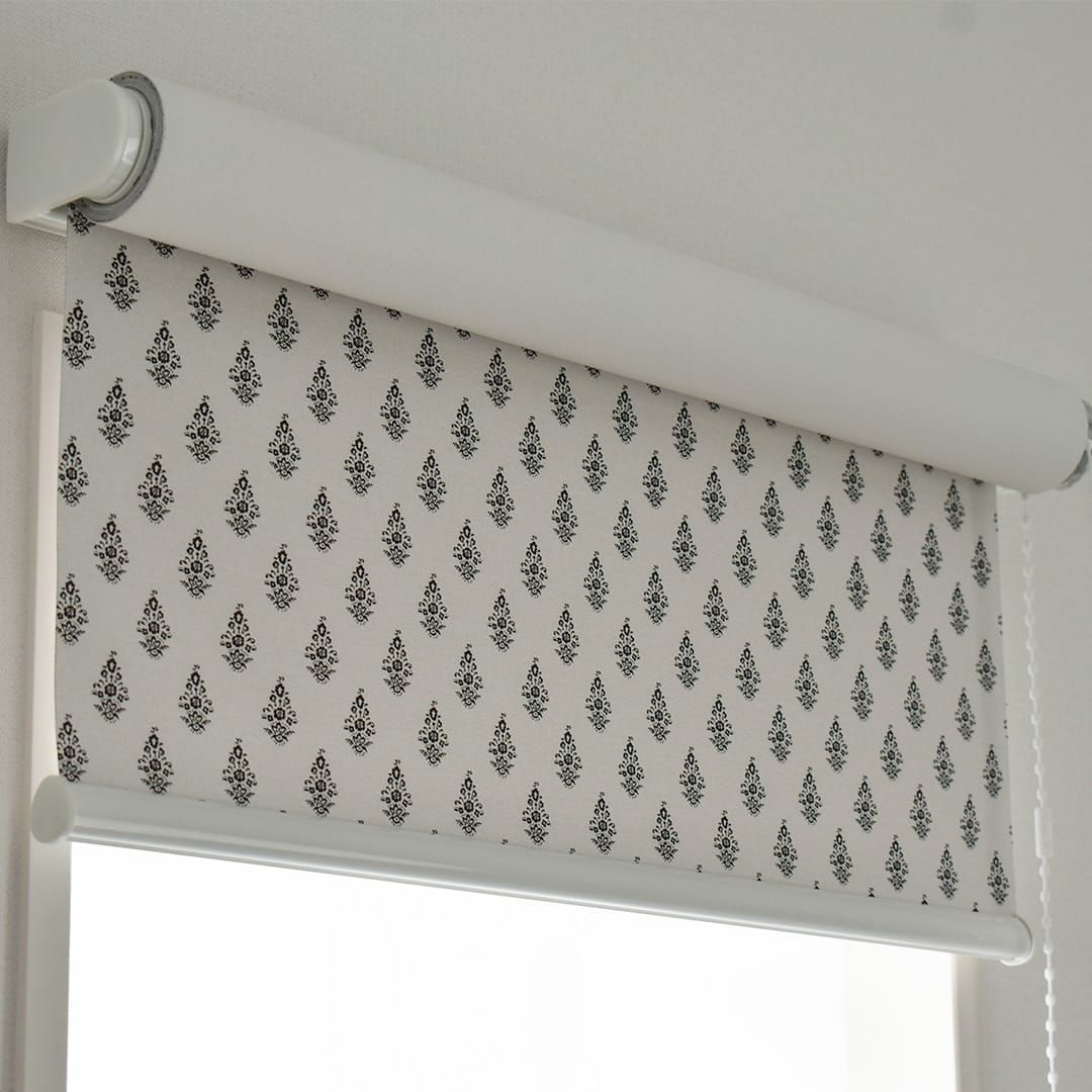 かわいい小さな模様がほっこりするテキスタイルです。 フレンチカントリー風のお部屋にピッタリです! すっきりコンパクトなロールスクリーンはカーテンとおそろいで小窓に設置したり、シューズクロークなどの目隠しや間仕切りなど使い方いろいろ!